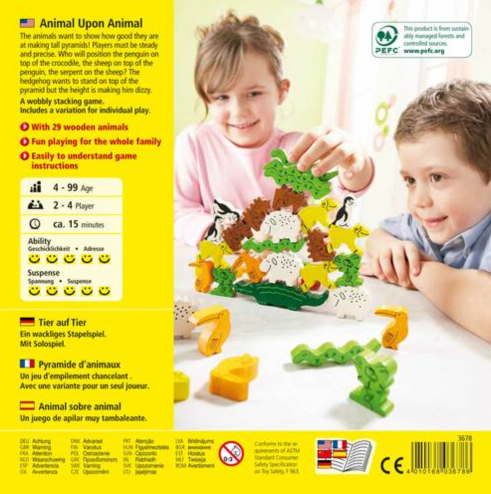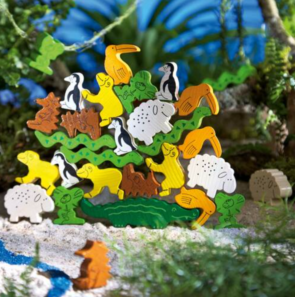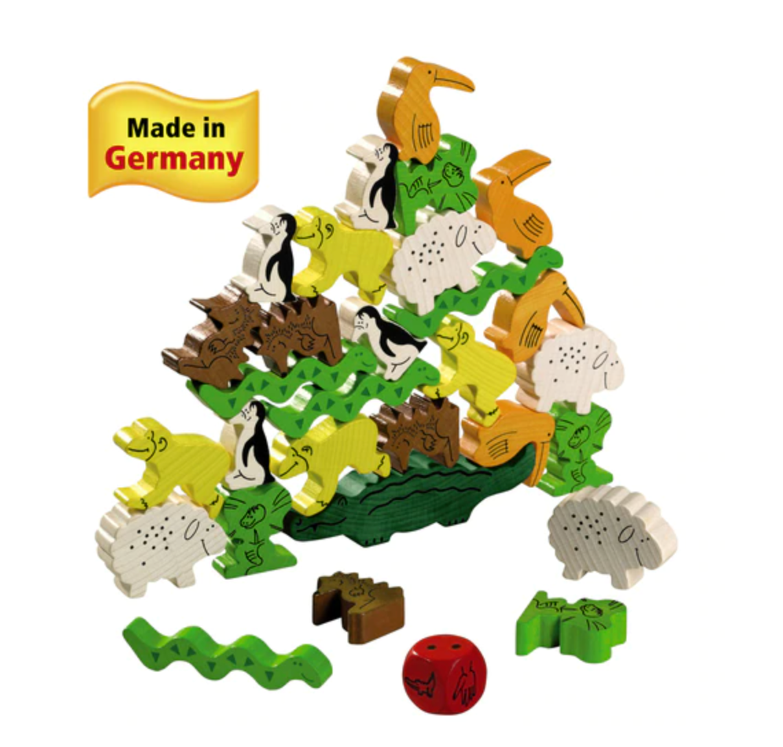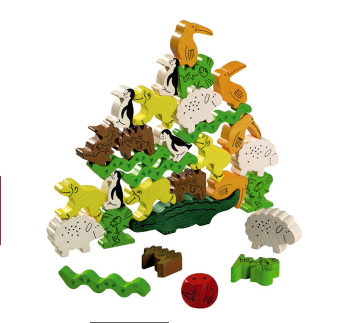 A wobbly stacking game for 2 – 4 animal piling players ages 4 – 99.