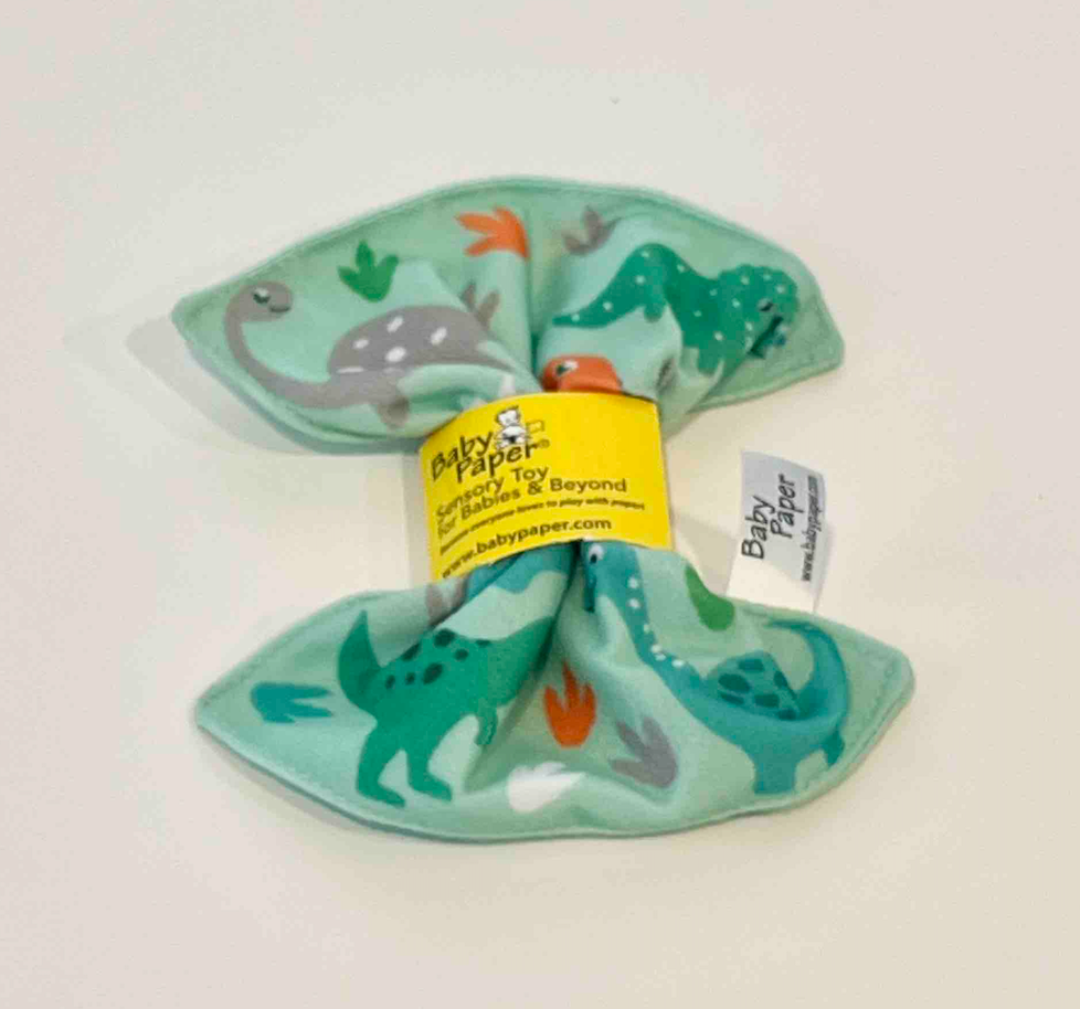 Baby Paper was created by a mom whose children were fascinated with paper napkins! This play inspired this crinkly toy that soothes and entertains while stimulating developmental skills and sensory exploration.