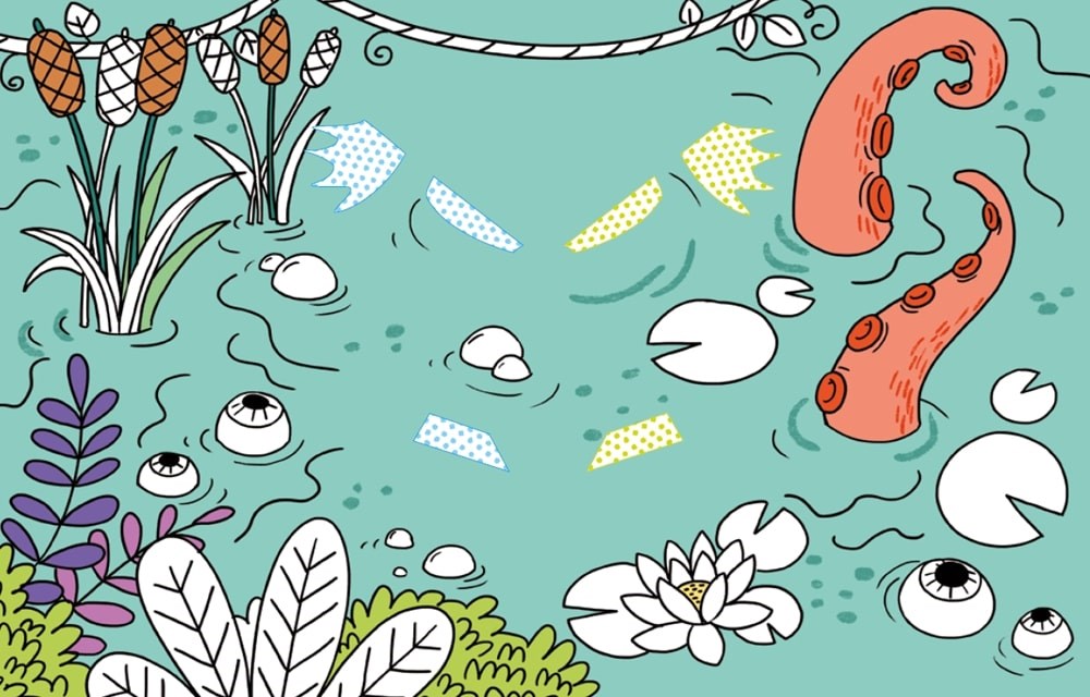 Then find the pop-up parts in the folder in the back of the book. Color them, then press them out. Fold and glue to the spreads as directed. Presto! You’ve made your own pop-ups!