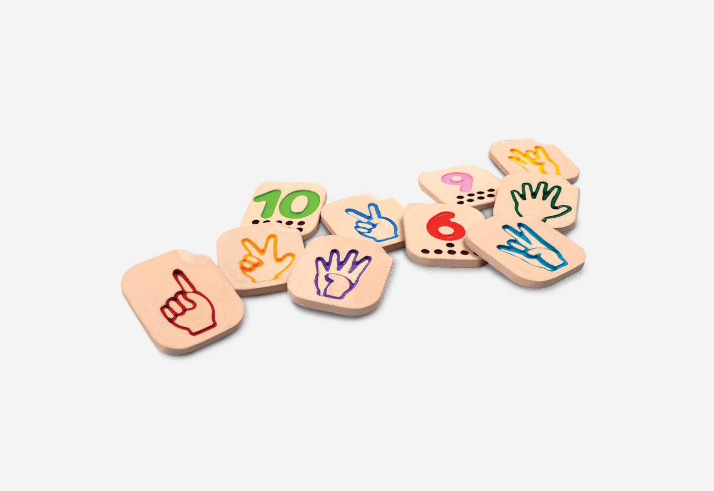 Add variety to your knowledge of numbers with this sign language number set! The 10-piece set features impressed numbers, counting dots, and American Sign Language illustrations that help children learn numbers in various ways.
