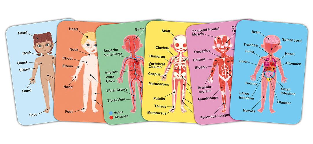 LEARN ABOUT ANATOMY: The six human body cards help to teach children about the different systems within the human body and how to identify them.