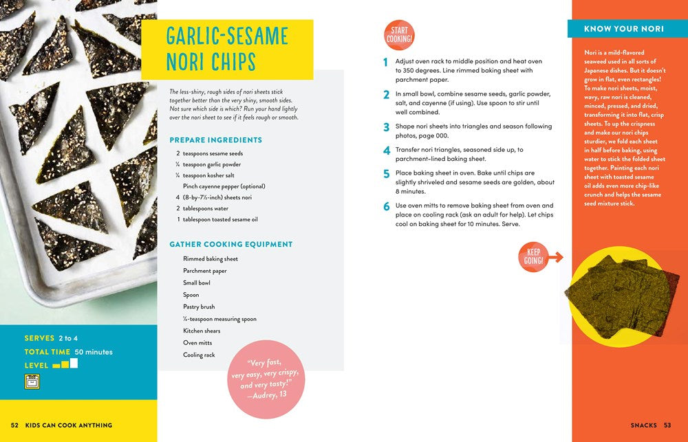Recipes were thoroughly tested by America’s Test Kitchen test cooks AND more than 15k ATK kid testers to get them just right for cooks of all skill levels.