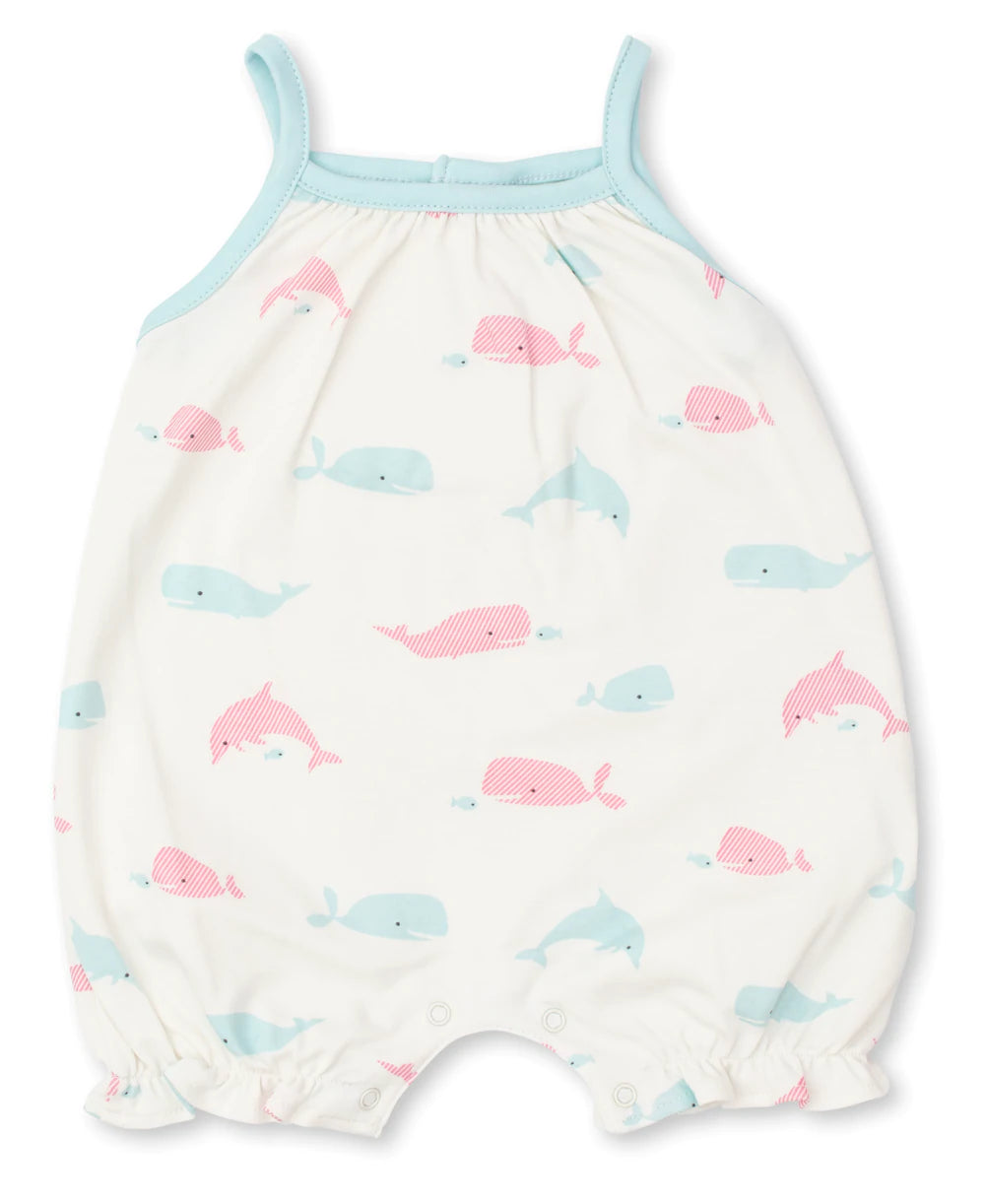 This allover whale print playsuit keeps baby cute, comfortable, and cozy. Made from the softest Pima cotton for the ultimate in comfort.