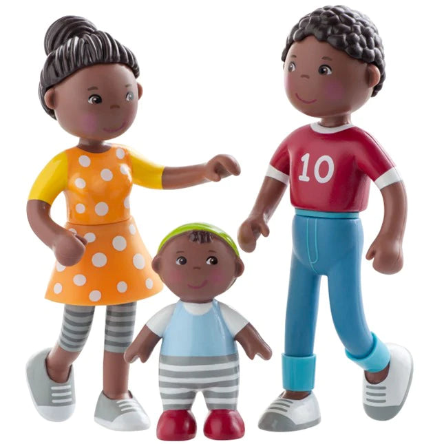 The flexible figures made of durable plastic ensure great fun for a long time. Adult figures measure 4.5" tall while baby is 2.5" tall. Ideally sized for most dollhouses.