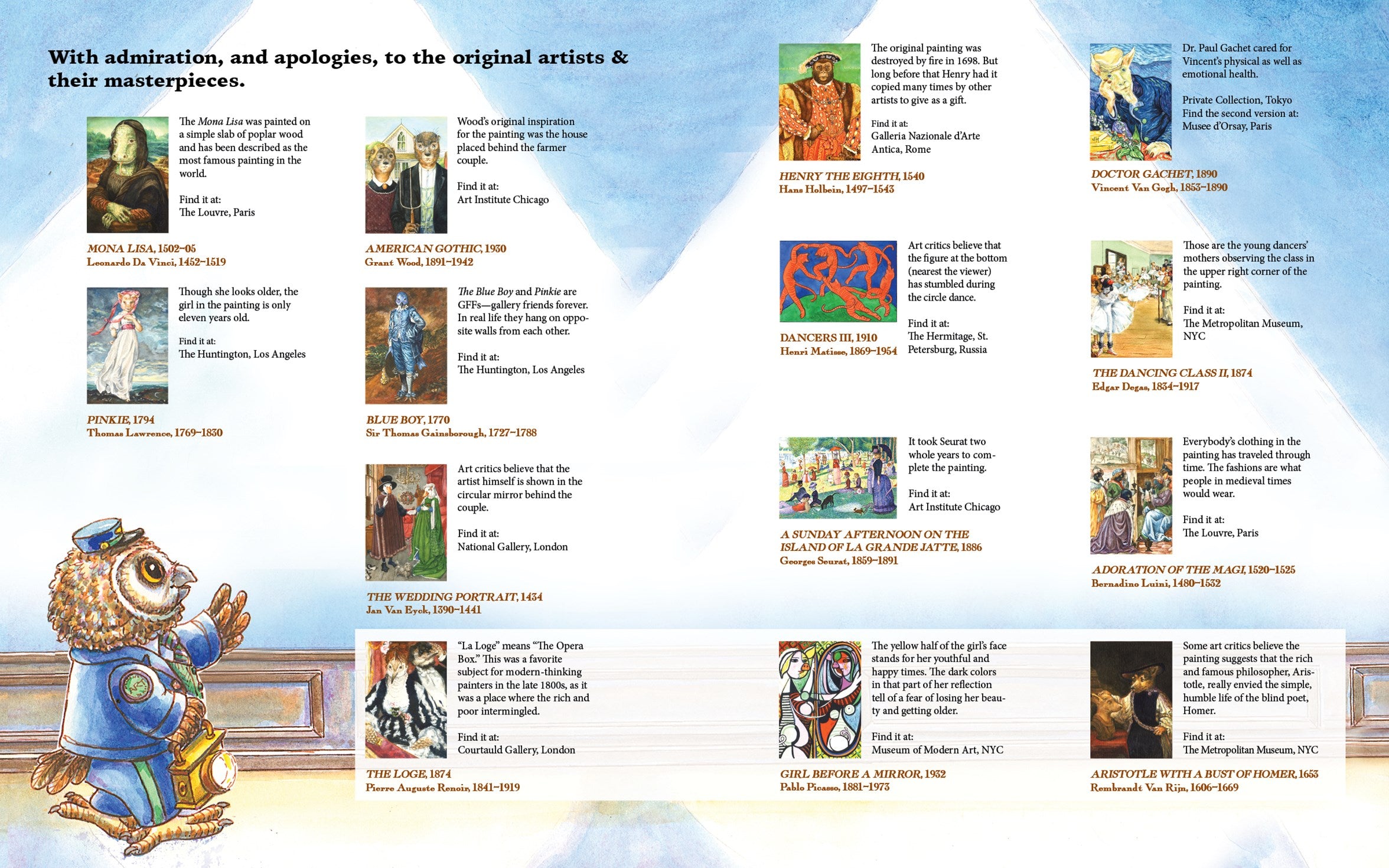 A whimsical introduction to famous artworks through the eyes of Mr. Owliver, a museum nightwatchman.