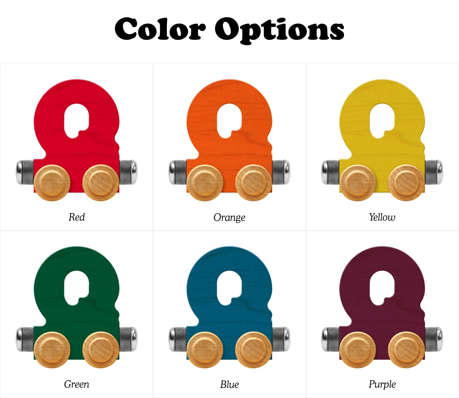 Each Bright Color NameTrains Letter Car is available in one of 6 colors: red, orange, yellow, green, blue, or purple.