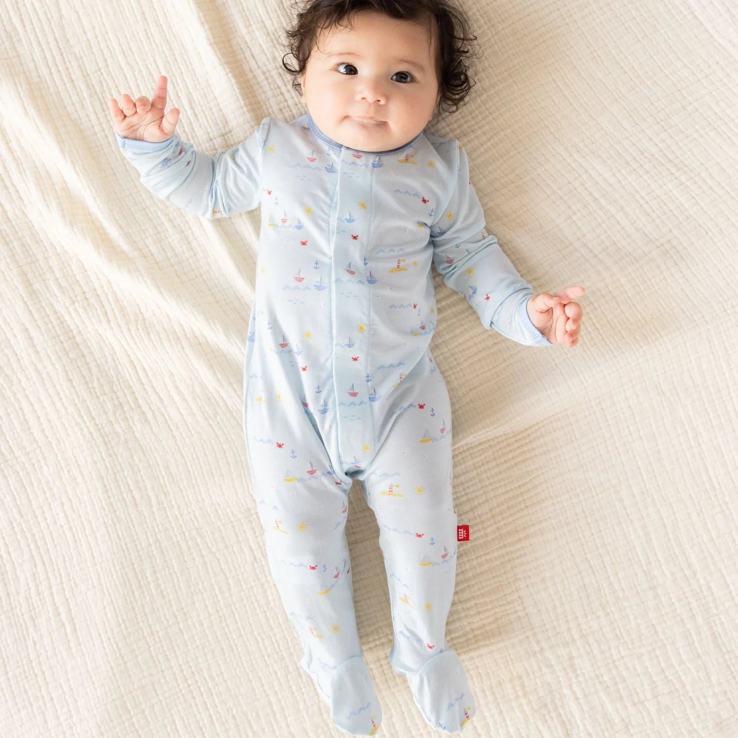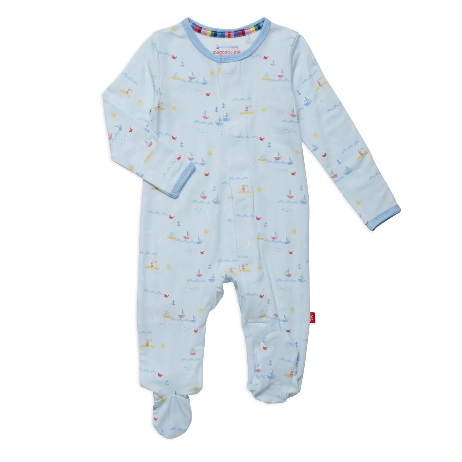 This parent favorite footie is an everyday (and night) essential with magnetic closures that make dressing easy. magnets are quick, quiet, and a lifesaver for middle-of-the-night changes. eco-friendly TENCEL™ modal is silky soft, breathable, and gentle on sensitive skin. temperature-regulating properties will keep warm in winter, you cool in summer, and oh-so comfortable year round.