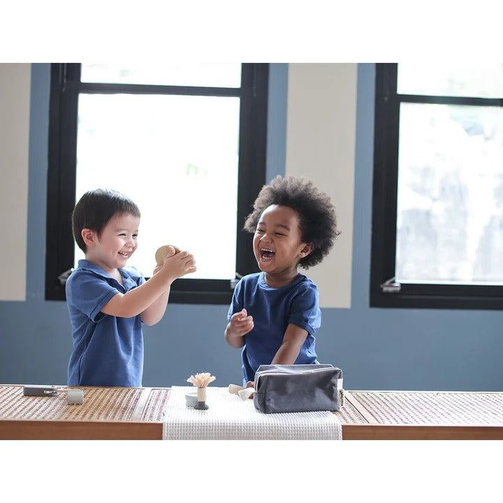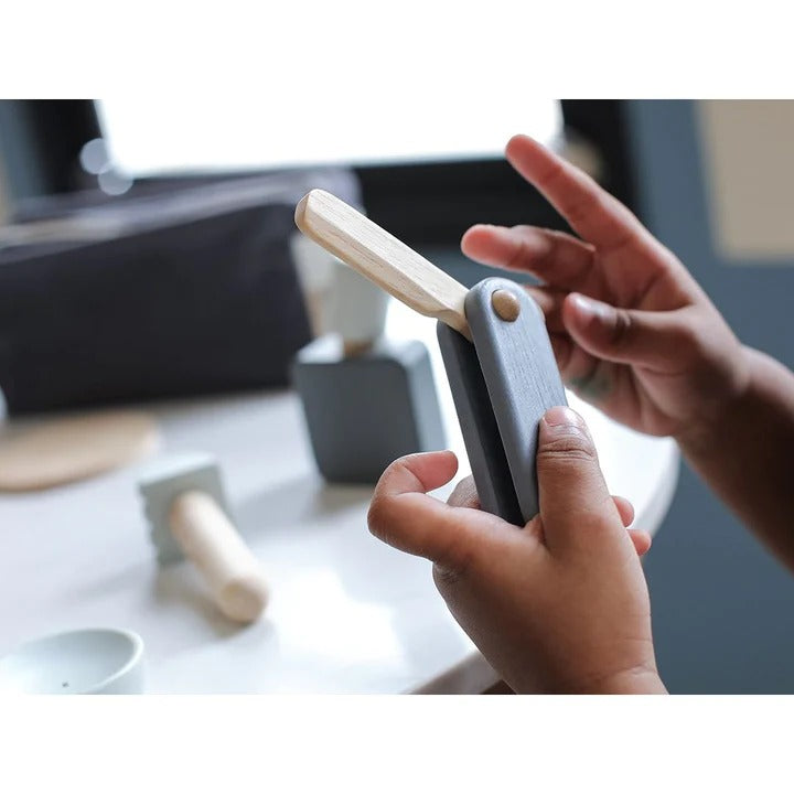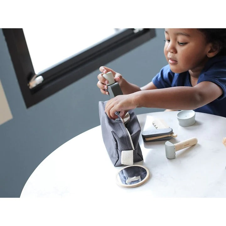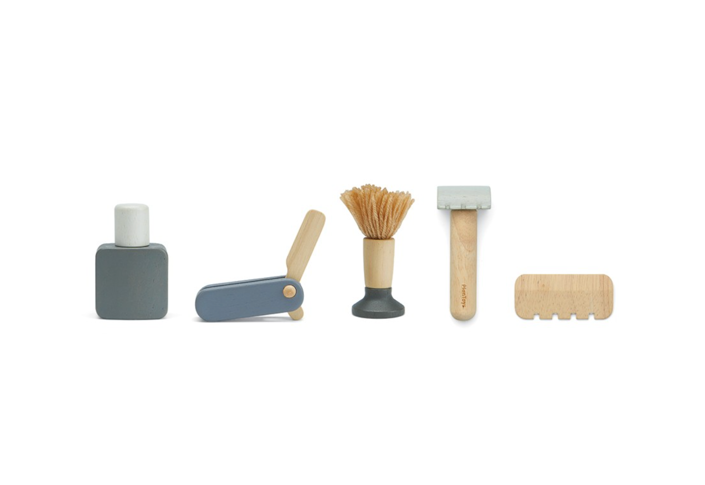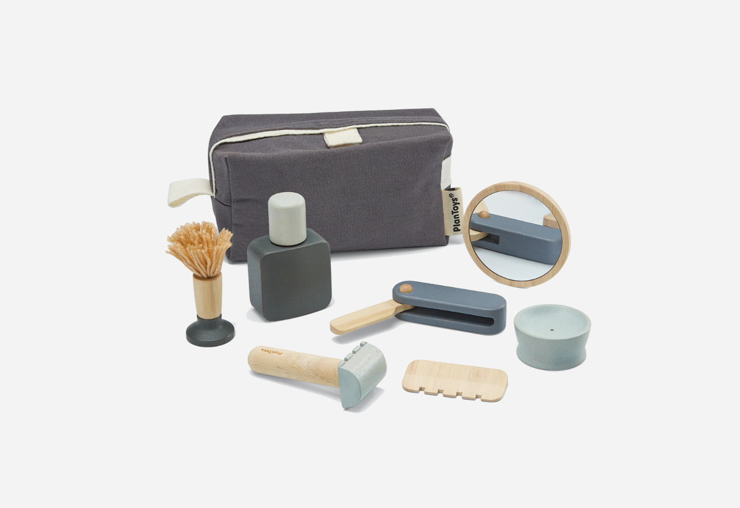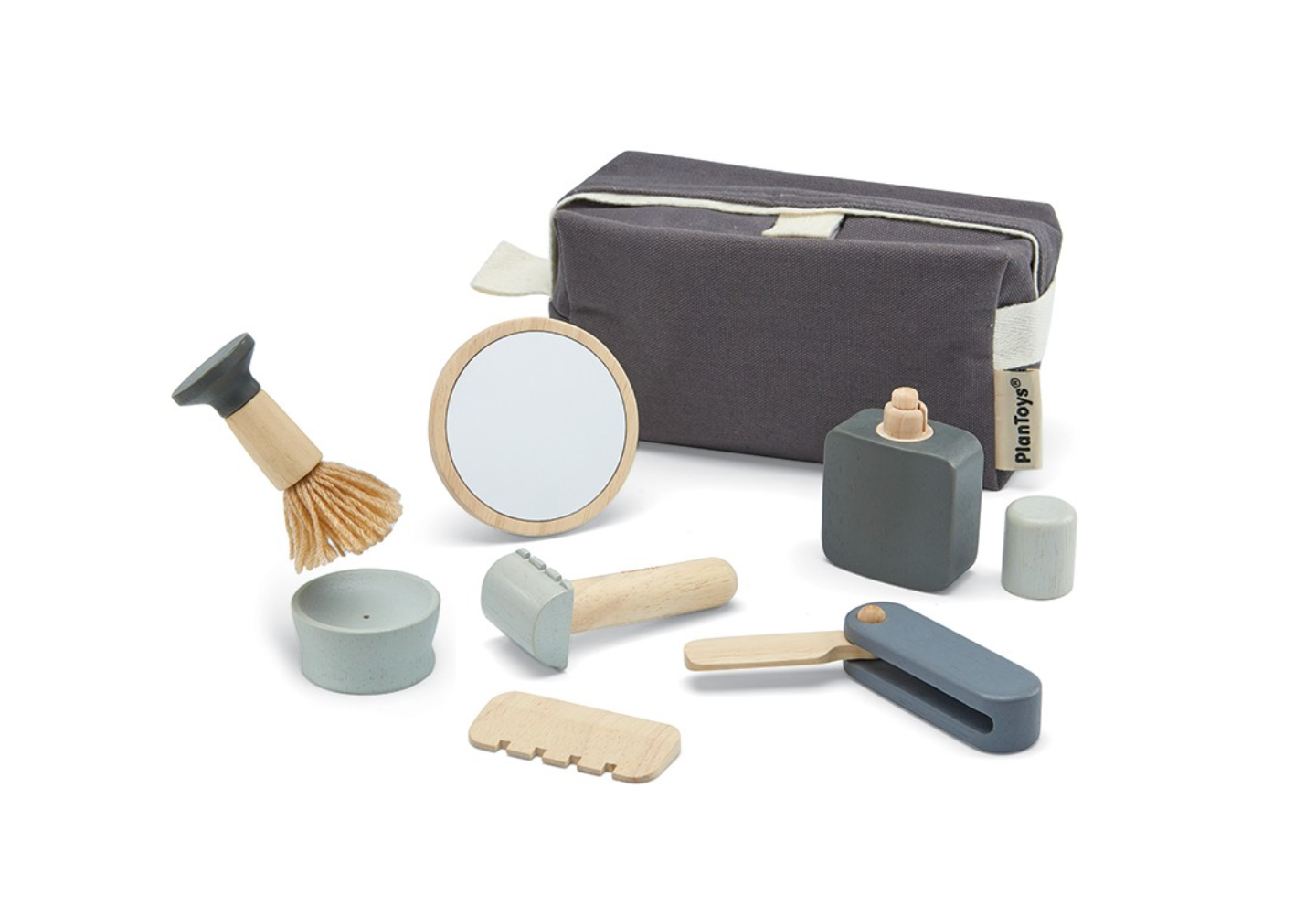 Spice up your morning routine with the PlanToys Shave Set! Complete with a carrying bag, comb, knife, trimmer, bowl and brush, razor, mirror and aftershave bottle, this toy is the perfect addition to any child’s pretend-play collection.