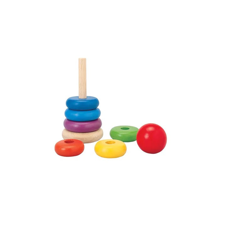 The colorful wooden Stacking Ring helps teach children about size and colors. For safety precaution, the center rod is foldable.