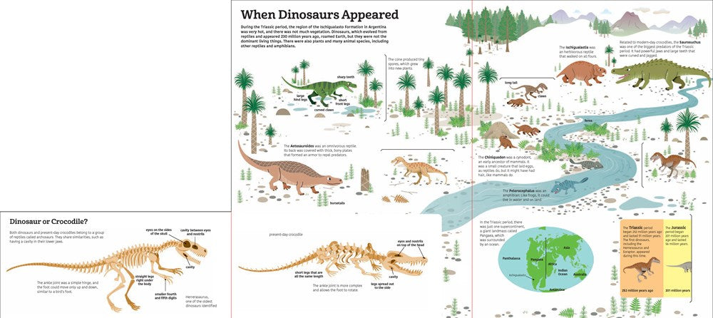 Discover the fantastic world of dinosaurs! The giants of the prehistoric era come alive in this highly interactive book, which includes flaps, pop-ups, wheels, and pull tabs to introduce the different types of dinosaurs and other creatures that lived millions of years ago. This comprehensive overview provides readers with informative and engaging text about how and where they lived, what happened to them, and much more!