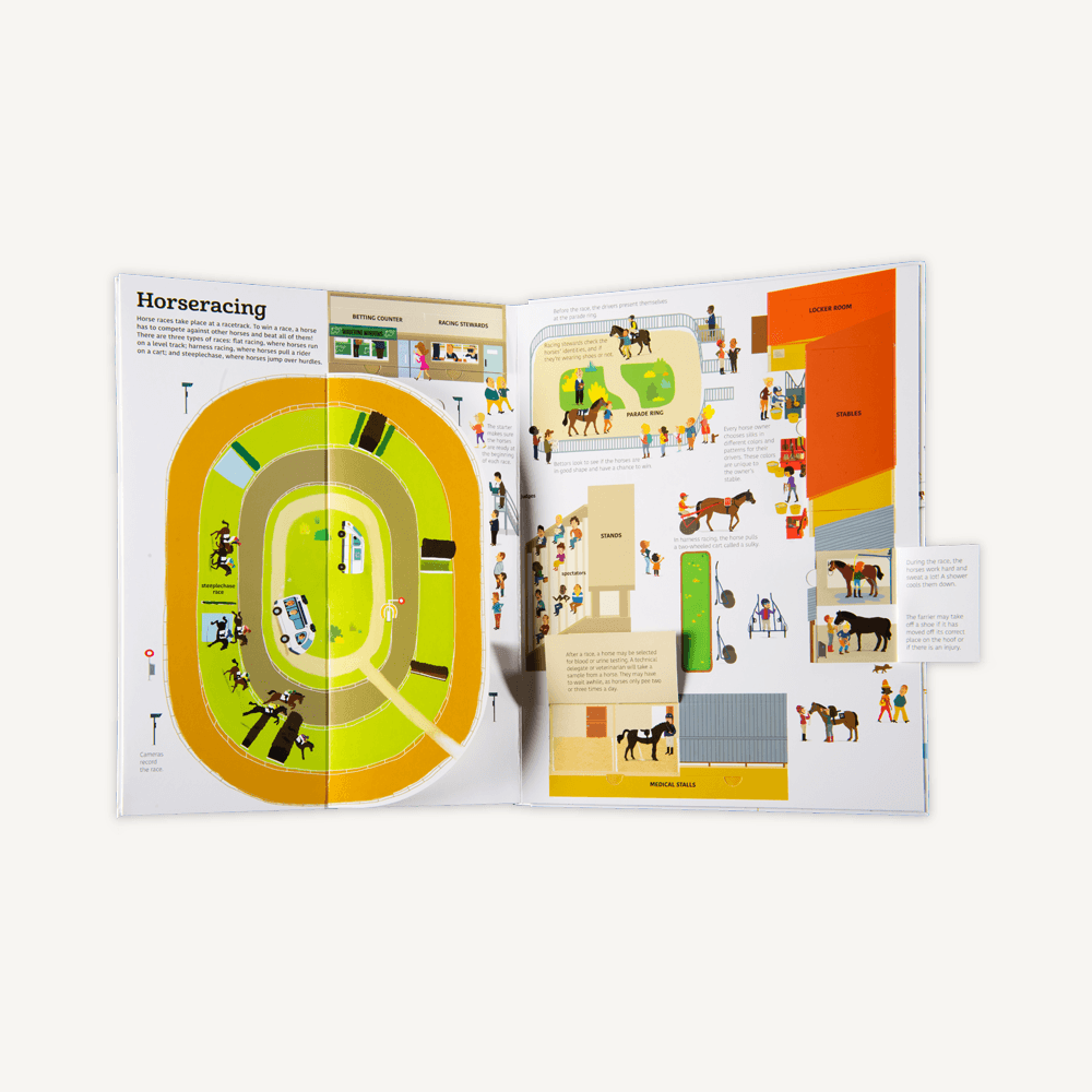 Learn all about the lives and history of horses: Mustangs run wild through the plains, a veterinarian cares for a horse's injured hoof... Best of all, lots of flaps, popups, pull-tabs, and rotating wheels bring the world of horses to life.