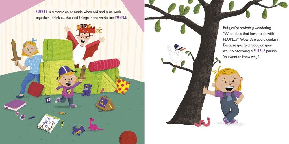 Actress, producer, and parent Kristen Bell (The Good Place, Veronica Mars, Frozen) and creative director and parent Benjamin Hart have a new challenge for you and your kids: become a purple person by embracing what makes YOU special while finding common ground with those around you.