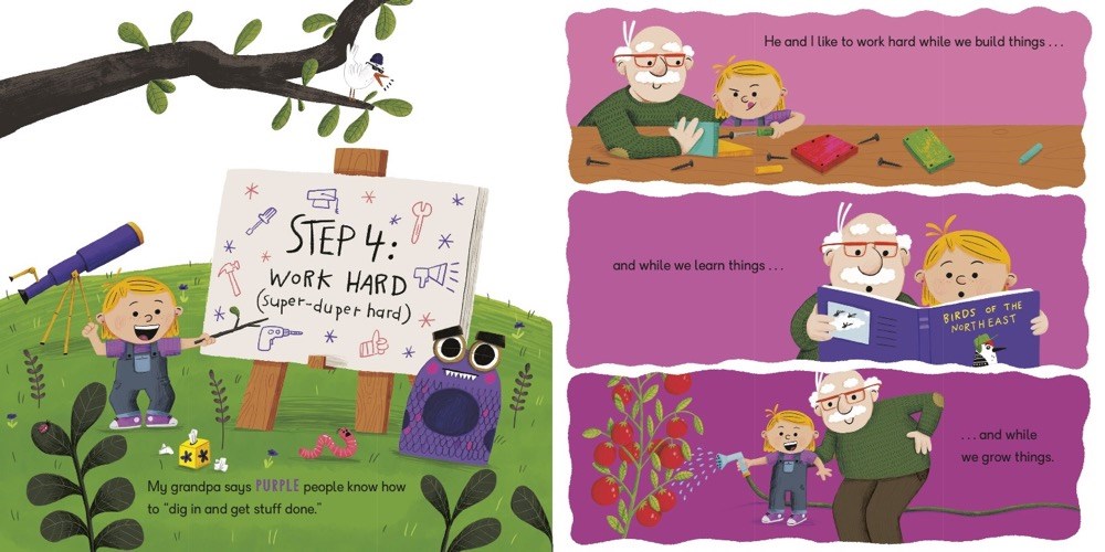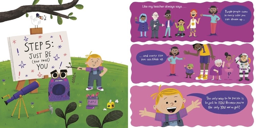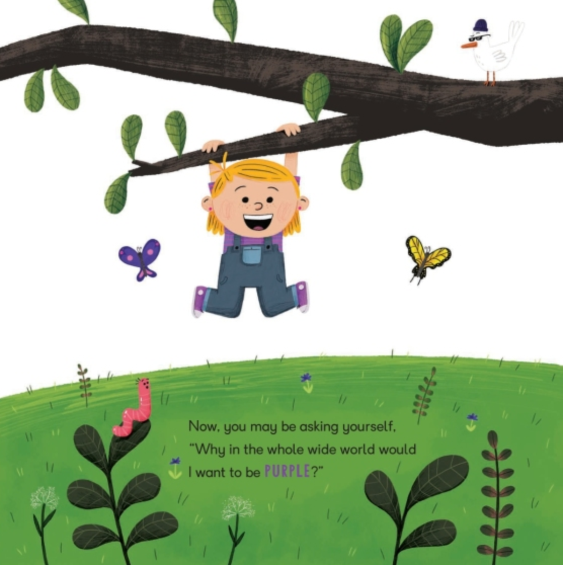 What is a purple person? Great question. I mean, really great! Because purple people always ask really great questions. They bring their family, friends, and communities together, and they speak up for what’s right. They are kind and hardworking, and they love to laugh (especially at Grandpa’s funny noises)! A purple person is an everyday superhero! How do you become one? That’s the fun part! Penny Purple will lead you through the steps. Get ready to be silly, exercise your curiosity, use your voice, and be inspired.